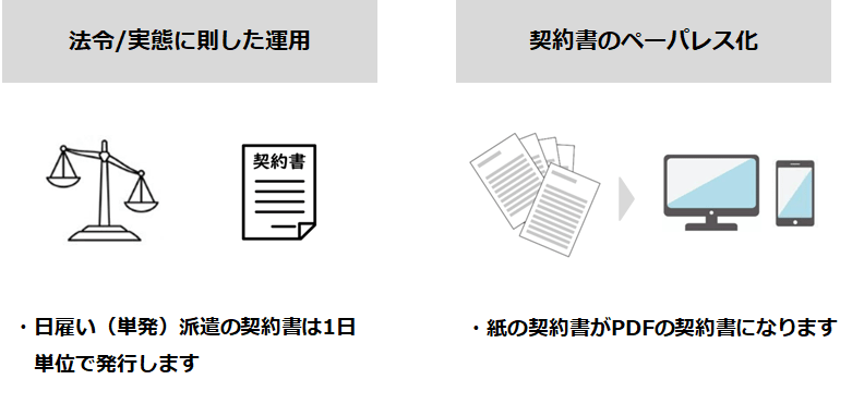 法令および実態に則した運用と契約書のペーパレス化を行います